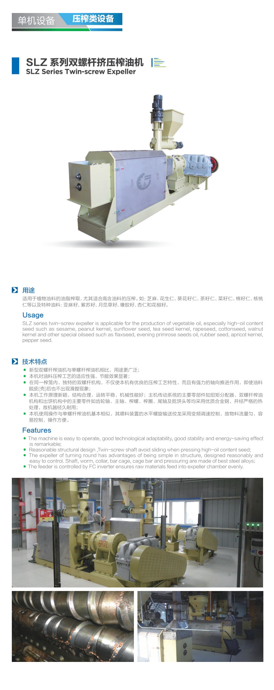 SLZ 系列双螺杆挤压榨油机 SLZ Series Twin-screw Expeller
