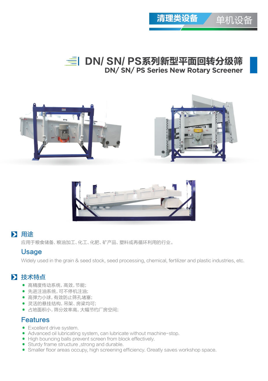 DN/ SN/ PS系列新型平面回转分级筛 DN/ SN/ PS Series New Rotary Screener